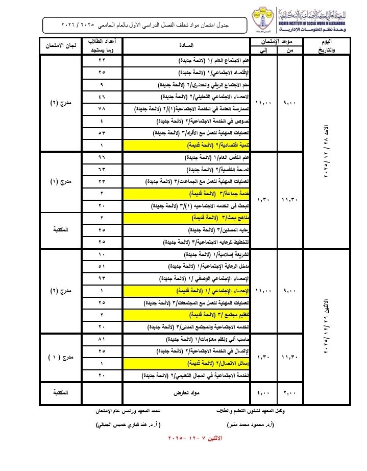 جميع الحقوق محفوظة © المعهد العالى للخدمة الإجتماعية بالاسكندرية عام 2024 - 2025