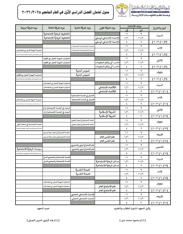 جميع الحقوق محفوظة © المعهد العالى للخدمة الإجتماعية بالاسكندرية عام 2024 - 2025